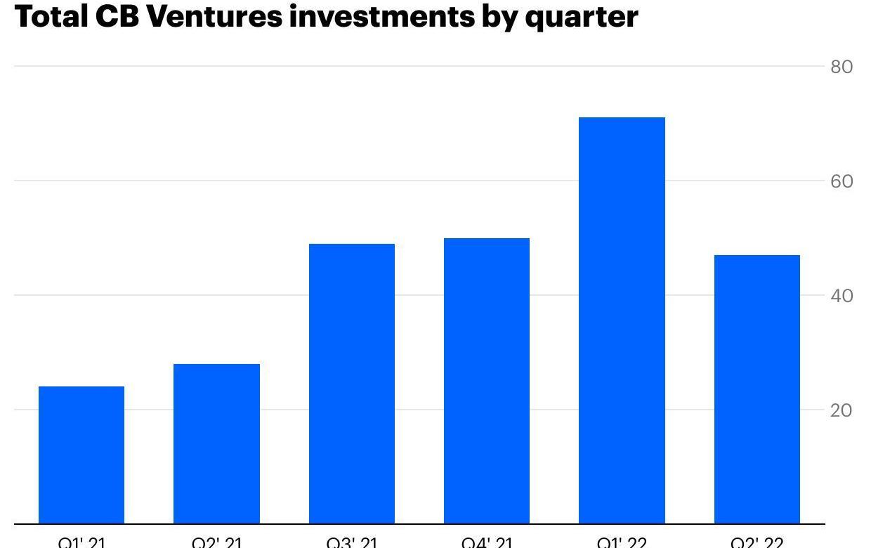 在第二季度,CoinbaseVentures繼續躋身加密領域最活躍的投資者之列,但交易速度也很緩慢,總數量環比下降34%,從71家降至47家。盡管與21年底和今年第一季度的狂熱步伐相比有所放緩,我們的第二季度活動仍同比增長68%;表明我們風險投資業務的整體增長。