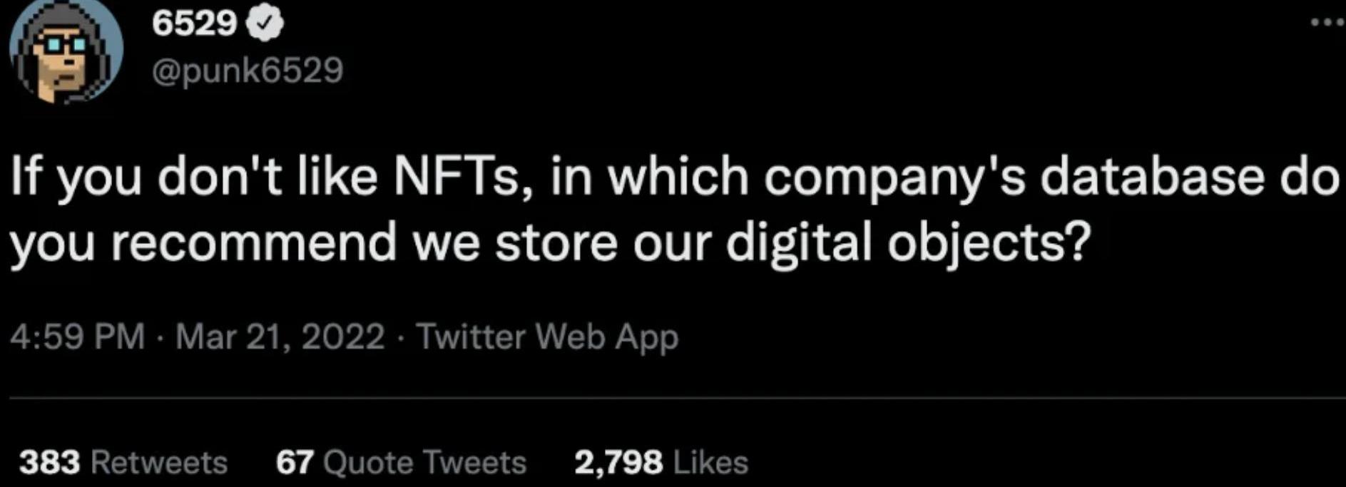 這種觀點的批評者認為,區塊鏈可以為創作者和收藏家帶來很多價值,但是不能忽視物理、倫理和普遍真理。
