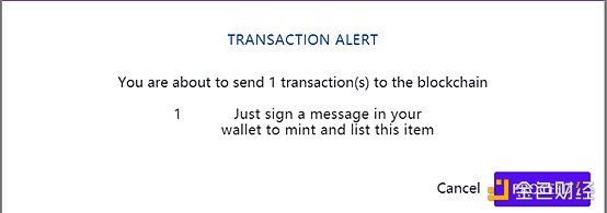 六、填寫完成后點擊LIST THIS ITEM。系統顯示你將要發送1筆交易到區塊鏈,只需要在錢包里簽名一條消息即可鑄造并列出該商品。