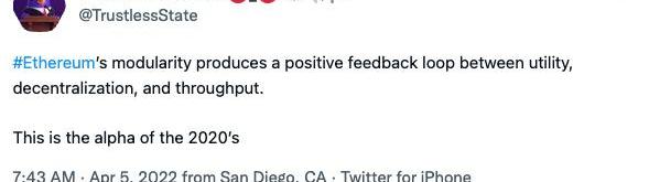 像Celestia這樣的解決方案似乎考慮了這些網絡效應,允許以太坊和其他EVM鏈充當結算層。這將保留EVM的可組合性,但具有更多的可選性和可擴展的安全性。這種方法可能是未來幾年圍繞Layer1區塊鏈的討論主題。