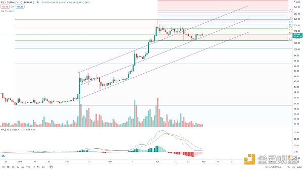 目前指標線雖然還是死叉,不過快線已有向上拐頭跡象,空頭量柱逐步縮短,近期波段下跌走勢明顯放緩,空頭下殺動能逐步喪失,前期也提到過,前期放量拉升,近期縮量調整,并且也未破關鍵支撐,屬于強勢洗盤手法,必須消磨掉持幣者的信心和耐心后,行情才會重新走強,目前階段還是震蕩磨盤的階段,屬于正常走勢,有耐心的就持有,回落低吸,近期超跌反彈,上方壓力172美金和185美金。