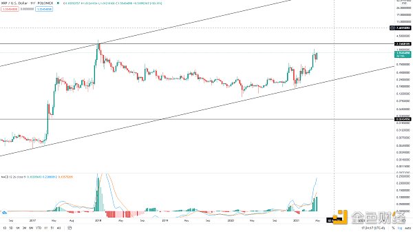 周線目前反包上周陰線,反彈還是比較強勢,大方向上升三角,趨勢依舊向上,后續創出歷史新高大概率,需要時間,有耐心的可以逢低布局,周線趨勢支撐0.86美金,短期看超跌反彈,后續可能還有二次下探,1.2美金下方分批低吸。