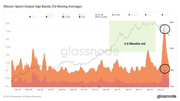 正如分析師william clemente所指出的,大部分拋售都是由現貨買家進行的,他們在這一牛市周期中收獲了比特幣。在2020年12月到2021年4月期間,比特幣的平均價格分別為35,000美元、45,000美元和60,000美元。