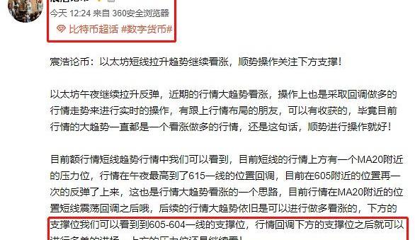 目前的短線行情依舊是一個看漲的趨勢,目前的行情的行情還是在順勢進行操作就好,對于后面的行情走勢而言,下方的支撐位我們可以看到MA20附近的605-606一線的位置,空倉的朋友回調下方的支撐位可以繼續進行多單的進場,順勢突破以后在繼續看,上方的壓力位還是先看到目前的壓力位615附近的位置,等行情突破就好!
