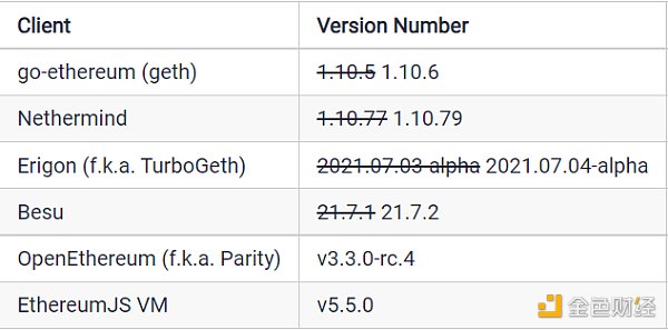 2、Go-ethereum、Nethermind和Erigon客戶端版本均于2021年7月23日更新,主要解決Ropsten測試網共識問題。