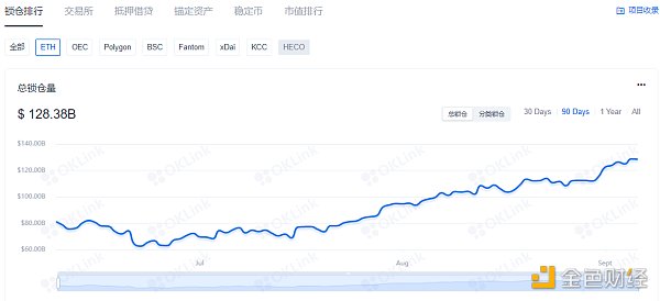 基于以太坊的DeFi智能合約鎖倉資產總價值