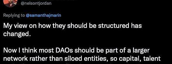 我在Twitter上詢問是否有人對DAO的看法發生變化。以下是我最喜歡的一些答案: