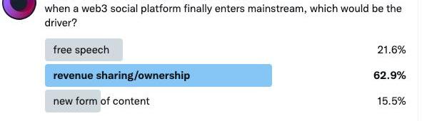 如今很多Web3社交產品仍舊沿用Web2商業模式,但這樣的單打獨斗很難。我們需要的不是諸如Web3Twitter,Web3Facebook之類的copycat,而是更多native的創新玩法。