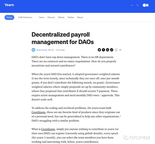 DAO 的去中心化薪資管理 詳見:https://medium.com/iearn/decentralized-payroll-management-for-daos-b2252160c543