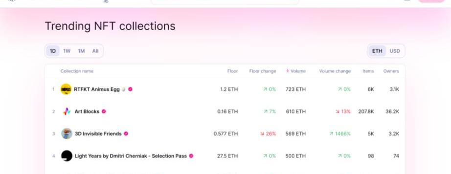 從視覺觀感來看,他們的用戶界面簡單干凈,采用了與大多數市場相似的外觀和感覺。一個顯著的區別是用戶能夠在ETH和美元定價之間切換,這可能對非加密本地用戶更友好。