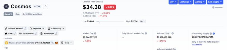 市場指標(Cosmos為例)CoinMarketCap或CoinGecko等網站會列出代幣的基本信息。市值交易量最大供應量,總供應量,流通量這些指標代表著市場對代幣的總體情緒,同時也可以使用這些指標來評估代幣的價值潛力。#14—鏈上指標