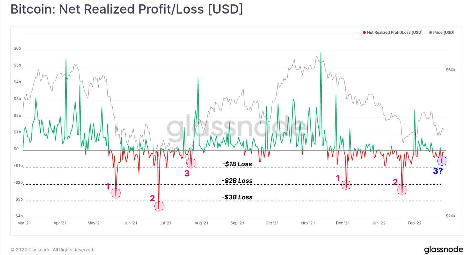 本周的新聞事件正在改變世界。如果比特幣的投資者,尤其是那些將比特幣視為一種風險資產的人,有一天會屈服,那么動態戰爭的爆發可能會是一個催化劑。然而,至少可以說,在本周的拋售期間發生的“鏈上投降”程度平淡無奇。事實上,它表現出與2021年7月20日拋售至2.9萬美元類似的特征,后者根本沒有看跌的后續行動,使價格跌至新低。本周實現的凈損失為7.13億美元,遠低于修正早期經歷的20多億美元的拋售事件。