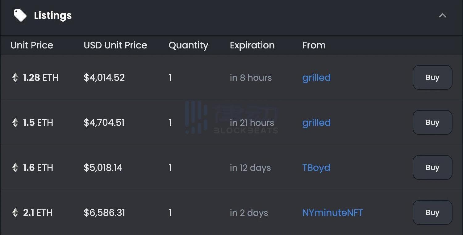 很顯然,列出的數量越少,賣家也就越少。如果我想買入一個項目,就會密切關注這一點,以判斷一個項目的熱度。隨著列出數量的下降,價格的上漲也會變得更加容易。