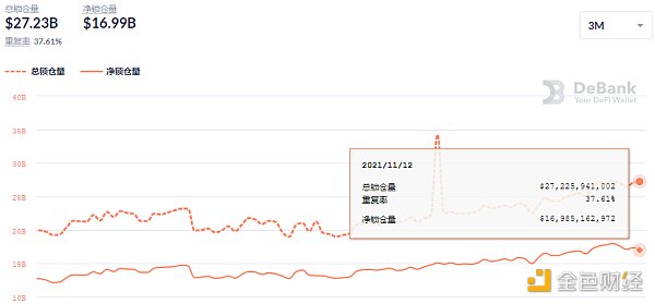 DeFi項目鎖定資產前十排名及鎖倉量,數據來源:Debank