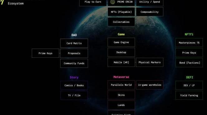 非實用功能卡包括卡背、概念卡和資產卡,其中概念卡和資產卡的二維碼顏色統一為白色。卡背雖然是游戲卡,但是在游戲中并無實用功能,忠實玩家可能會想要選擇自己的Parallel卡背,或者特殊動畫的卡背;概念卡則是作為收藏的藝術品,其價值可能由卡牌制作精美程度或者發行版次決定;資產卡則是較為特殊的一類NFT,其中PrimeKey則是治理型NFT,持有該卡可參與創建提案及投票,或者燃燒PrimeKey,贖回對應比例的PRIME代幣,燃燒過后的PrimeKey將變成一張沒有任何功能的紅色收藏卡,該項目未來的代幣經濟模型可能將由該卡決定,獲取途徑為空投、二級市場購買或者補充包購買;CatalystDrive需要與PrimeKey結合使用,總量150張,其玩法還要等待官方后續公布,獲取途徑為二級市場購買或補充包購買。