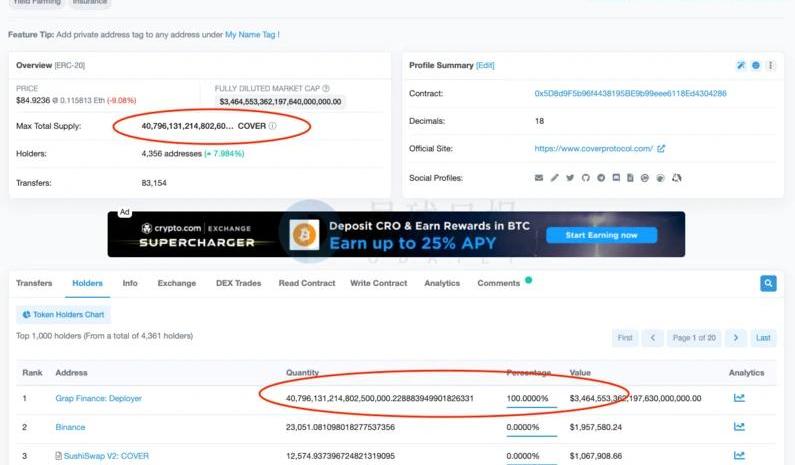 無常損失表現為池子中的代幣此消彼長Uniswap產生無常損失的另一個因素在于AMM池子中的交易價格依靠套利去糾正。這是產生無常損失的直接原因。假設你在uniswap的ETH-DAI的池子注入了1個ETH和100個DAI做流動性,兩天后ETH的價格翻倍,當你撤出流動性時,你能拿回的代幣只有0.5個ETH和200個DAI。都是主流貨幣的情況下,這樣的損失我們或許能夠接受,但如果其中一個是空氣幣或者被人大量控盤時,損失就會很嚴重。最近的例子是Cover事件,大量被增發的Cover被注入到ETH-Cover池子中,流動性提供者的ETH被換走,拿到一堆增發且不被承認的Cover,好在最后拿到了補償。