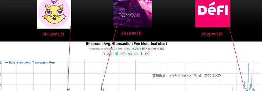 ▲2020年DeFi鎖倉量變化數據來源:DeBank這些數據都印證了DeFi的市場剛需與發展潛力,也成為區塊鏈基礎之上的金融創新產品越來越成熟的標志。以太坊網絡平均手續費創下歷史新高