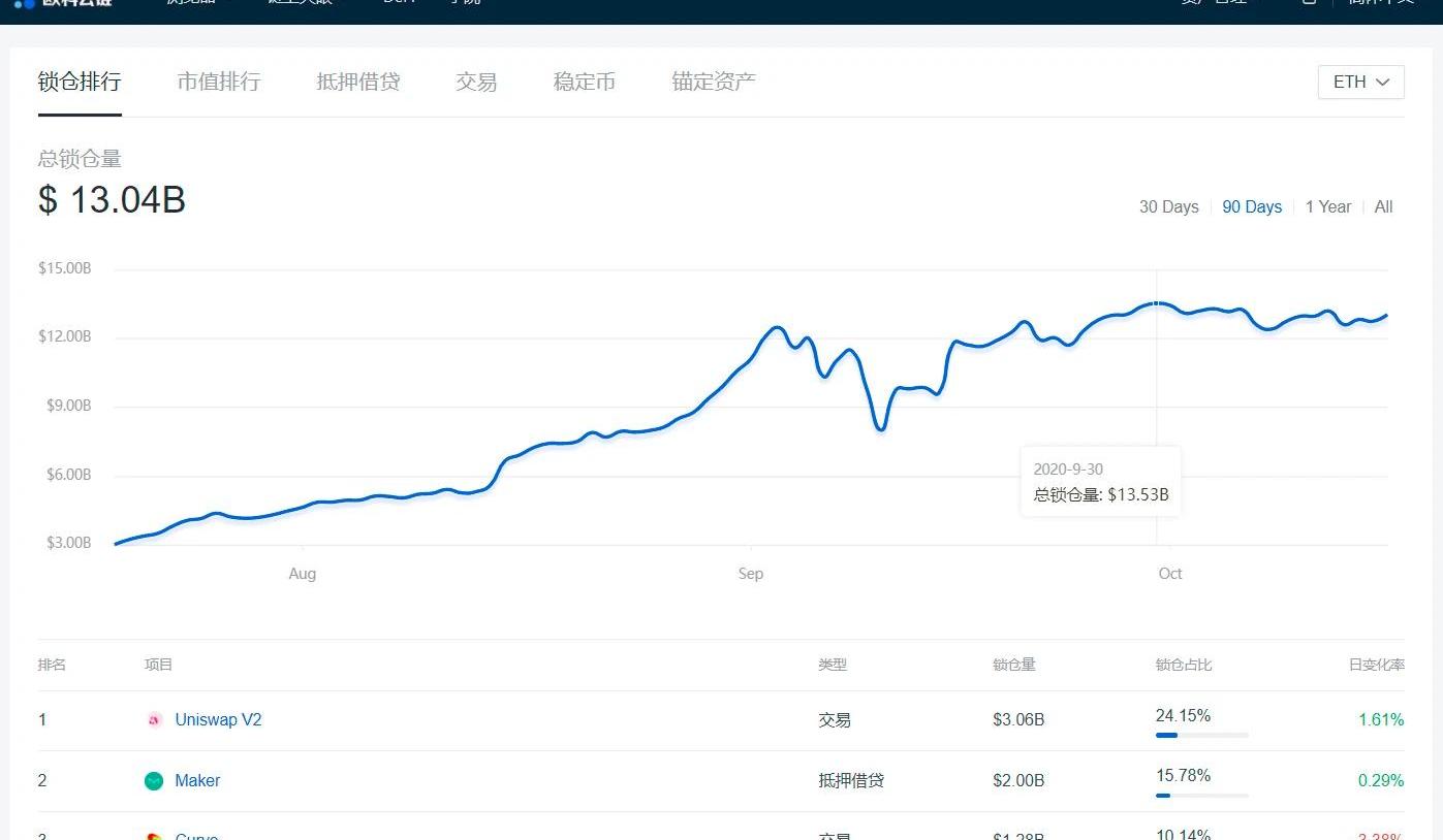 1、歐科云鏈OKLink:Uniswap總鎖倉量突破30億美元KLink10月16日數據,截至今日11時30分,當前以太坊上DeFi協議總鎖倉量約合130.4億美元。其中排名前三的分別是UniswapV230.6億美元,環比上升1.61%;Maker20億美元,環比上升0.29%以及Curve12.8億美元,環比下降3.38%。數以十億計的資產被鎖定在DeFi中,這反映了去中心化金融強大的“價值捕獲”能力。