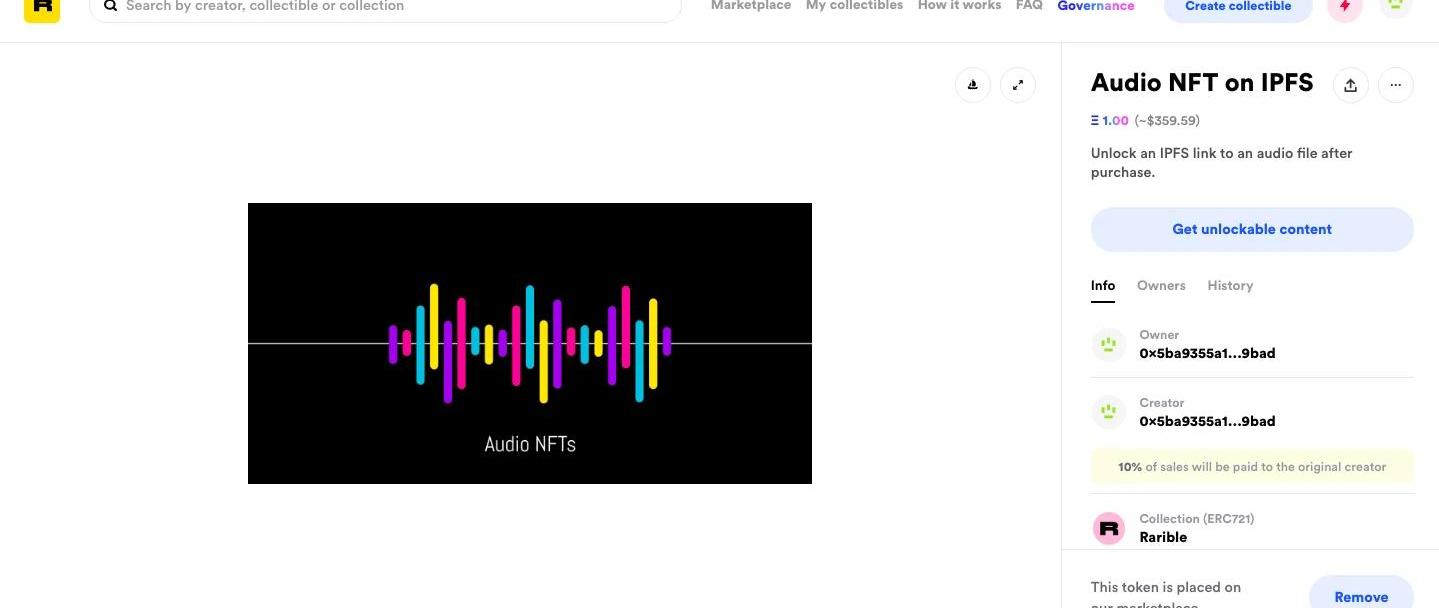 AnAudioNFTonIPFStoSell你的音頻NFT現在就做好了,并且可以在大量市場上出售。HappyPinning!
