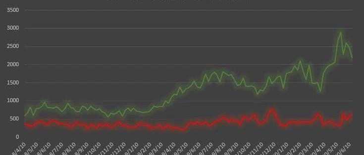 分項數據上來看,規模較大的經紀商持倉多頭頭寸自435張回落至406張,空頭頭寸自214張躍升至294張,該數值創出今年4月21日以來新高。此前一直保持強烈看漲態度的經紀商賬戶在最新統計周期內進行了比較罕見的凈空調倉,而且有一點值得強調的是,這種凈空調整中多倉的減持幅度并不大,這也意味著所謂的多單獲利了結并不是這類賬戶短線態度扭轉的主要原因,相比之下空頭頭寸快速反彈創出近八周新高的表現更值得重視。「經紀商賬戶『死多頭』的態度是不是要轉變了?」將成為未來一到兩周COT周報的關鍵點。