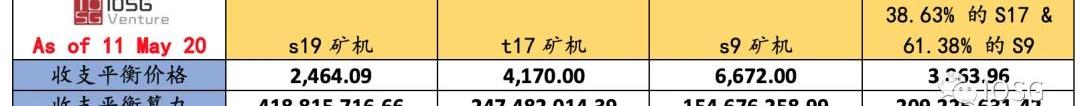 減半前礦機收支平衡價格和收支平衡算力: