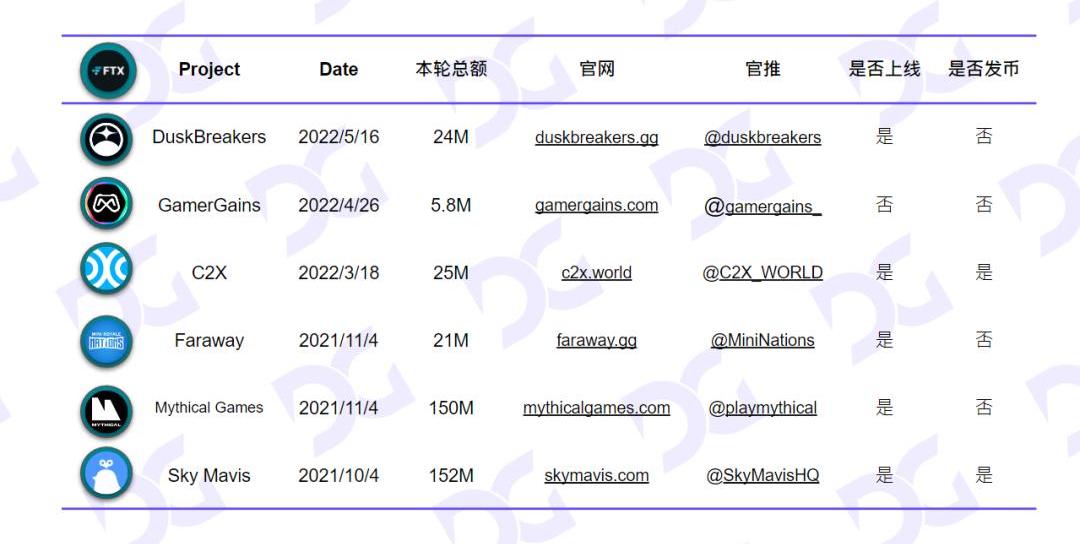 FTX所投鏈游項目基本信息
