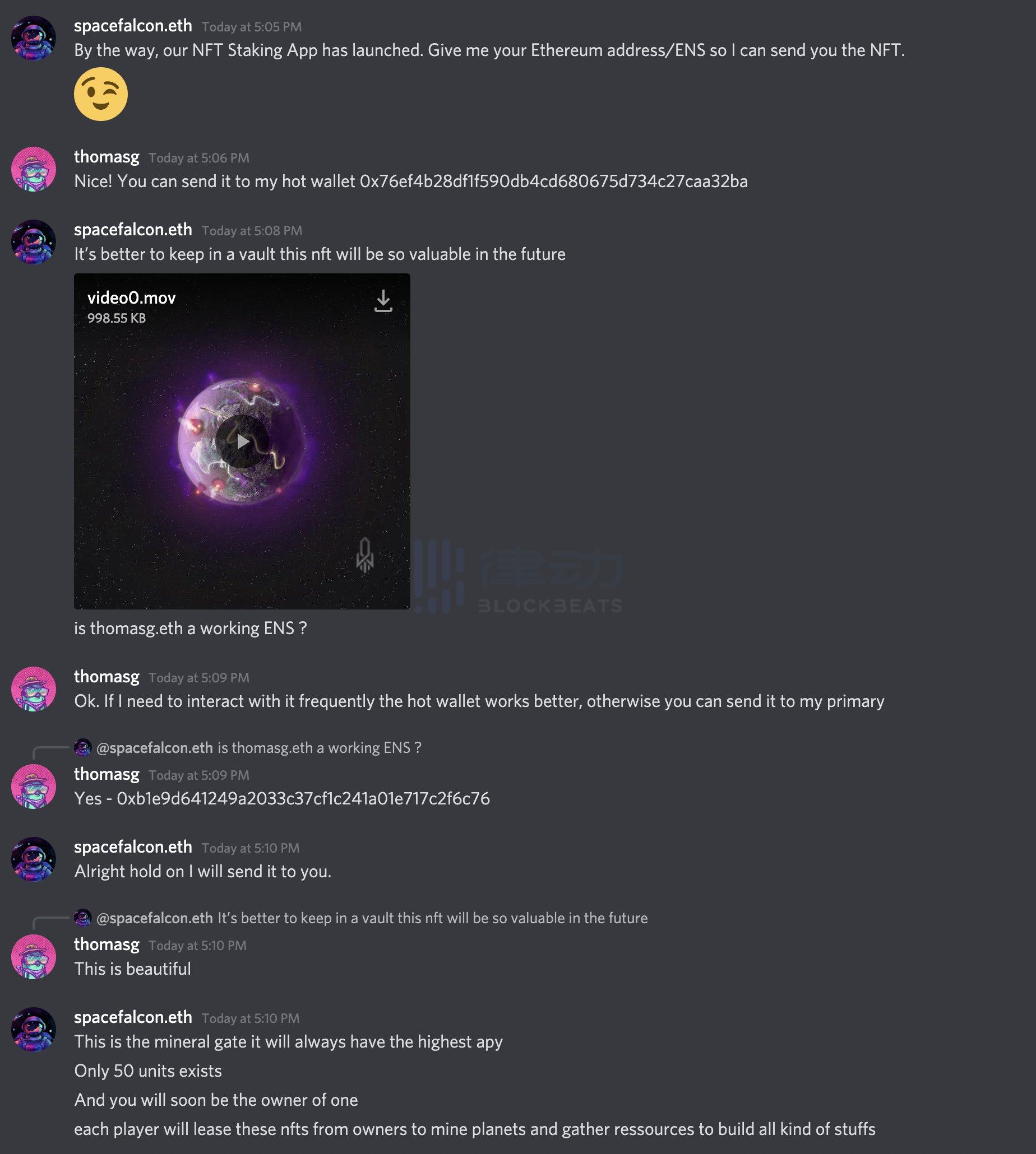 后來,她告訴了我更多關于 Space Falcon 的信息,我感覺這個 NFT 項目和其他那些追求「快速致富」的項目差不多。但鑒于她為 Arrow 所做的貢獻,我也必須展示一些支持作為回報。