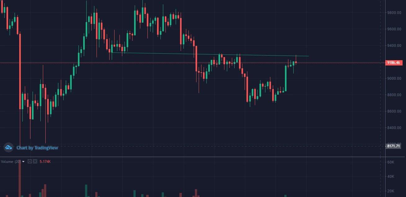 昨日下午16點多幣價回撤9636之后迅速反彈至9800,遇阻之后晚盤22點回撤9652附近;午夜凌晨盤窄幅震蕩;今日早間再次反彈9865之后再次瞬間回撤至9566,當前9690附近.