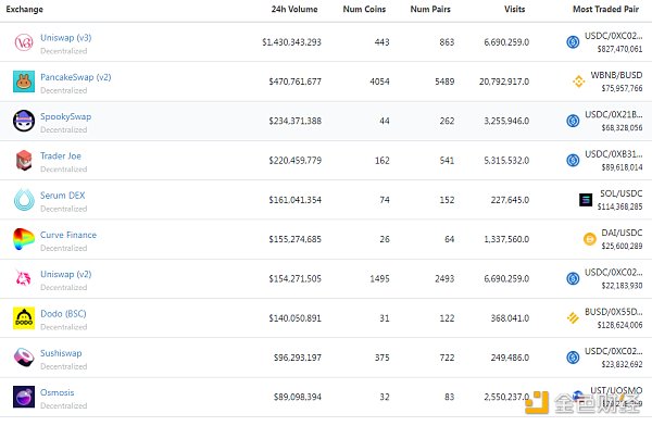 ?過去24小時去中心化交易所的交易量 數據來源:coingecko
