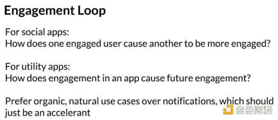 /用戶創造內容->其他人看到了內容->產生了社交反饋->內容創造者獲得通知(循環到第一步)