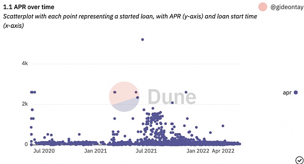 NFTfi.com 目前的 APR 分布約 30% 到 110%不等,2022 年 5 月平均年化收益為 60% 左右。