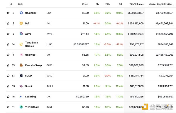 過去24小時去中心化交易所的交易量 數據來源:coingecko