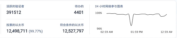 截至5月27日,信標鏈運行平穩。鏈上數據顯示,信標鏈已擁有39.15萬個節點,累計質押總額約1252.77萬Eth,其中有效投票參與率達99.77%。自2021年10月15日至今,節點數量和質押總額穩步增長,每日驗證者收入也在緩慢增長中。 目前,信標鏈每日獎勵量超1500枚ETH。