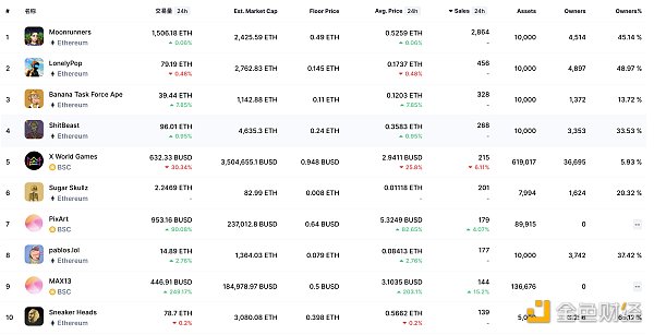 24小時內銷售漲幅前十的NFT 數據來源:NFTGO