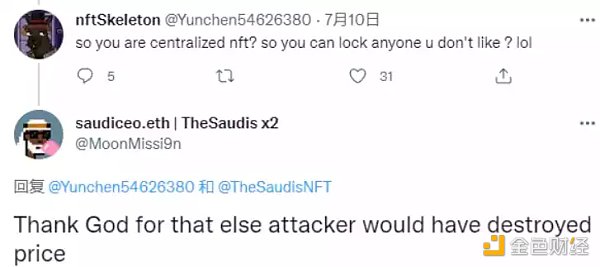 在 The Saudis 這條推特的評論區,部分圍觀群眾紛紛留言表示這「太過于中心化」,他應當享有「交易自由」,而對于這些言論,一些用 The Saudis NFT 當作頭像的網友給出了如下回復: