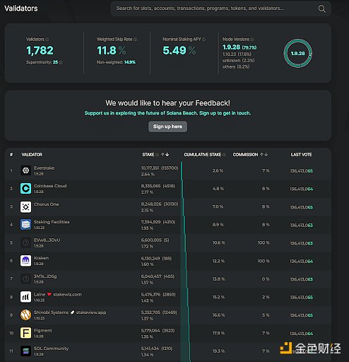 今天的質押收益率基于當前的通貨膨脹率、質押的 SOL 總數以及個人驗證者的正常運行時間和傭金。驗證者的傭金是網絡通脹支付給驗證者的百分比費用。驗證者的正常運行時間由驗證者的投票決定。
