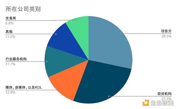 本次調研覆蓋了加密行業產業鏈的項目方、投資機構、媒體 / 自媒體 /KOL、交易所及行業服務機構等,從職業來看覆蓋了創始人、商務市場人員、技術人員、個人投資者、研究員 / 投資經理、記者 / 編輯等,具有廣泛性和代表性。