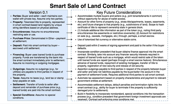 通過使用OpenLaw來創建一個標準化的法律協議,規范雙方之間的財產買賣,"土地買賣合約"就這樣產生了。這份《土地買賣合約》包含了人們在這種交易中所期望的標準條款,包括財產的描述、購買價格條款和融資條件。