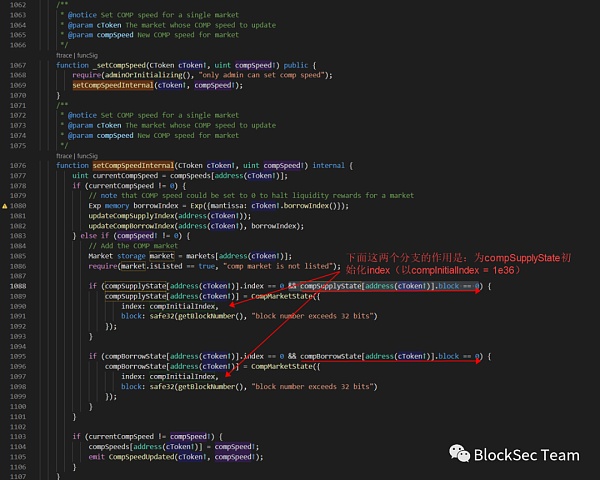 Compound很顯然意識到了問題出在setCompSpeed函數只考慮了"未初始化市場",而沒有考慮"暫停的市場"
