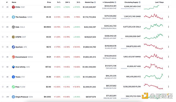 NFT總市值、市值排名前十項目 數據來源:Coinmarketcap