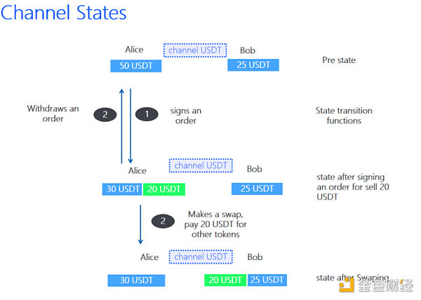 閃電網絡已經有資金通道支持多跳HTLC支付。由某種代幣出資的通道形成了一個邏輯網絡,在這個網絡中,即使沒有直接通道,Alice也可以向Bob付款。支付路徑上的節點提供流動性,如果支付成功,通道則會收到部分費用。參與交易的Alice和Bob通過閃電網絡收付款和交易,并不會產生額外的Gas費用。
