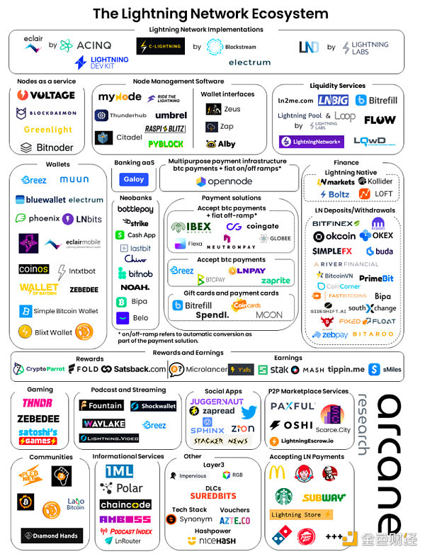 隨著閃電網絡技術的不斷迭代和發展,以及使用閃電網絡的用戶量和資金量日益增長,越來越多的公司正在進入閃電網絡生態系統。