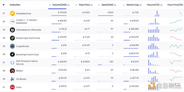 1、StreetMachine系列NFT24小時交易額增長超200%