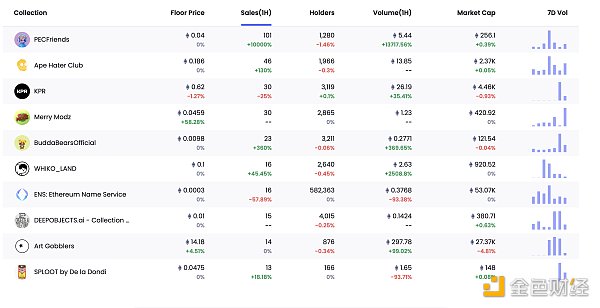 24小時內銷售前十的NFT 數據來源:NFTGO
