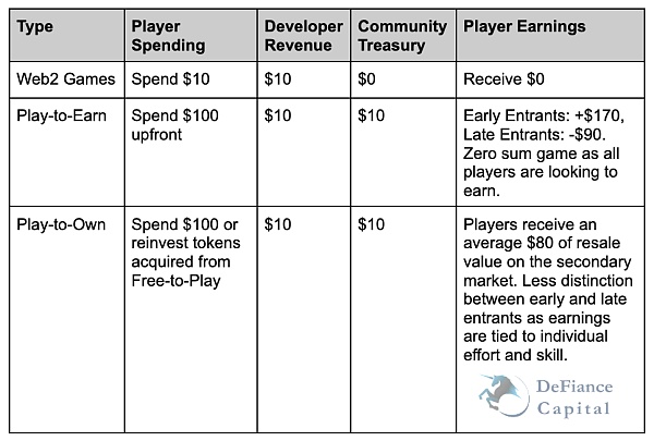 可見,在游戲可玩性的基礎上,玩家在 P2O 中的收入將比 Web2 游戲高出一個數量級,有了健全的經濟管理和深度的游戲內容,P2O 將比 P2E 更具有可持續性,在更長的時間里為開發者和社區創造收入。