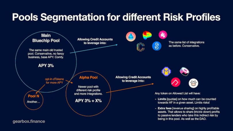 也就是說,貸方繼續在當前非常保守的主流藍籌借貸池中提供流動性,獲得 dTokens,也可以選擇將這些主池 dTokens 存入風險較高的 Alpha 池中賺取更多 APY,不過需要承擔更多風險。