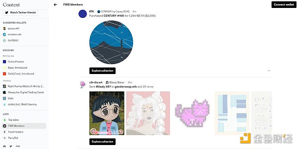 Context 是一個平臺,可讓您監控目標加密錢包的 NFT 活動,確保您始終通過平臺的提要流或導航欄了解您關心的人的最新 NFT 動態。