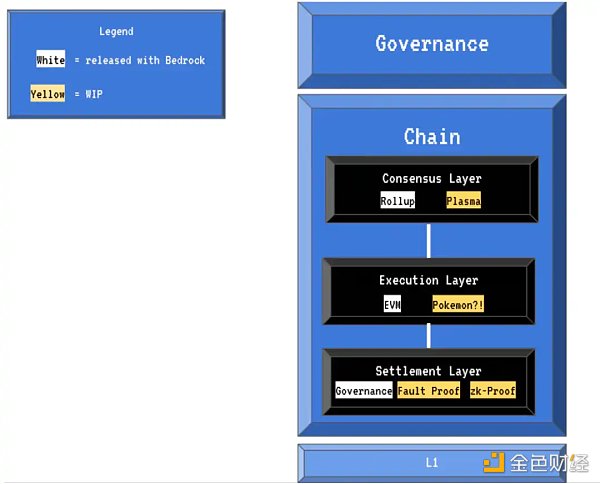 OP Stack 的每一層都由定義好的 API 描述,由該層的模塊填充。從理論上講,OP Stack 能構建任何基于其 API 的模塊化區塊鏈。