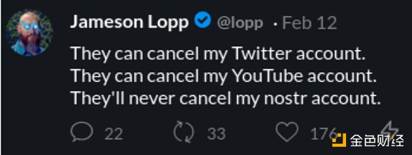 所有人都有發言的權利,雖然沒有人有義務去傾聽。Nostr為爭議性言論提供了一個更加可靠的歸宿。盡管中繼器可以阻止用戶向其發布內容,但卻不能阻止任何人向其他中繼器發布內容。由于用戶是通過公鑰來識別的,所以如果他們被某個中繼器封禁,也不會失去自己的身份和粉絲網絡。