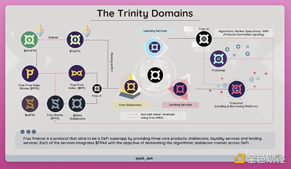 Frax以FRAX為中心構建了一個完整的“DeFi Trinity”生態系統: